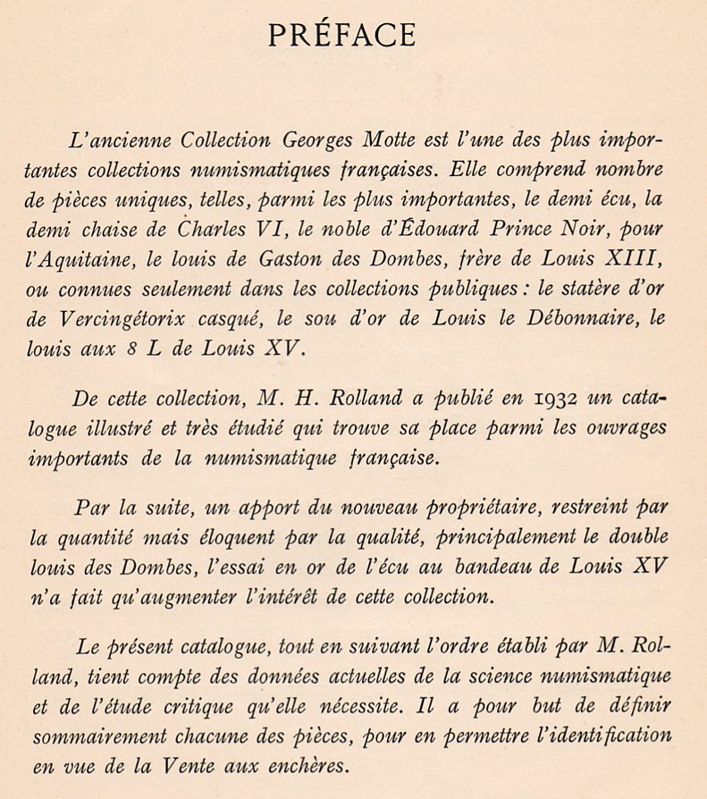 - Vente Georges Motte (1951) : monnaies françaises rarissimes.